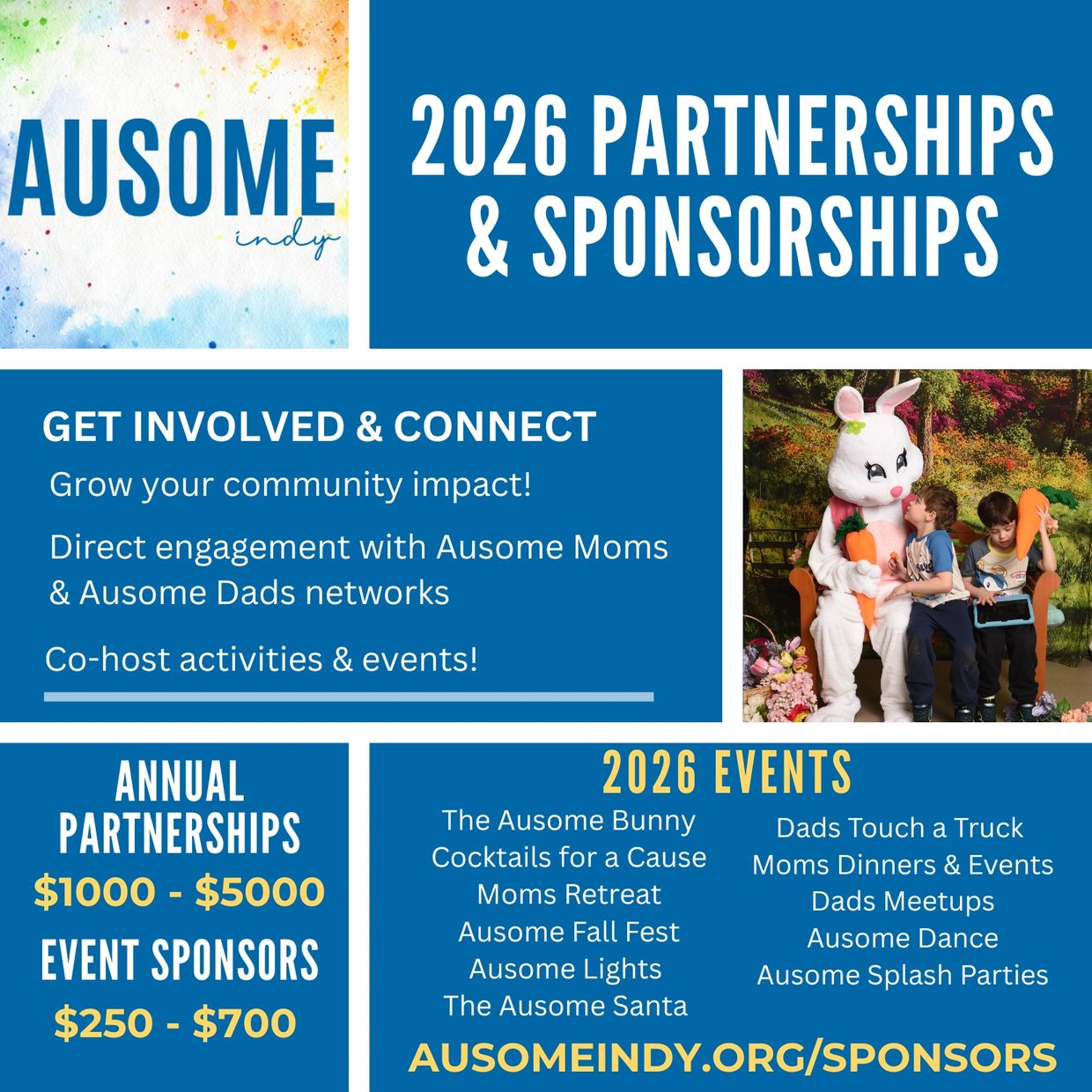 To tailor your partnership or sponsorship to meet your goals and interests, please reach out to kate@ausomeindy.org